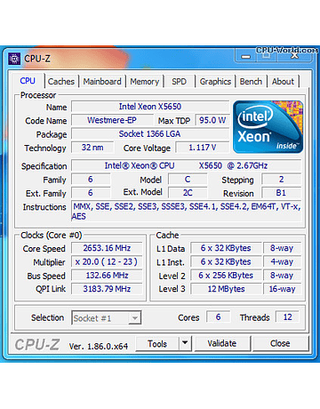 CPU Intel Xeon X5670 6-Core 2.93GHz 12MB 6.4GT/s LGA1366 SLBV7 Server CPU Processor