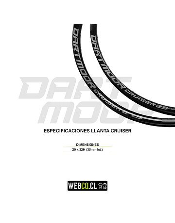 Llanta de conexión con mangas y ancho interior de 35 mm. Dedicada para neumáticos anchos (2,35 "-2,8"), perfectos para Trail y Enduro. Cruiser tiene una construcción de una sola cámara y es una llanta tubeless ready. Disponible en tamaño 29".
